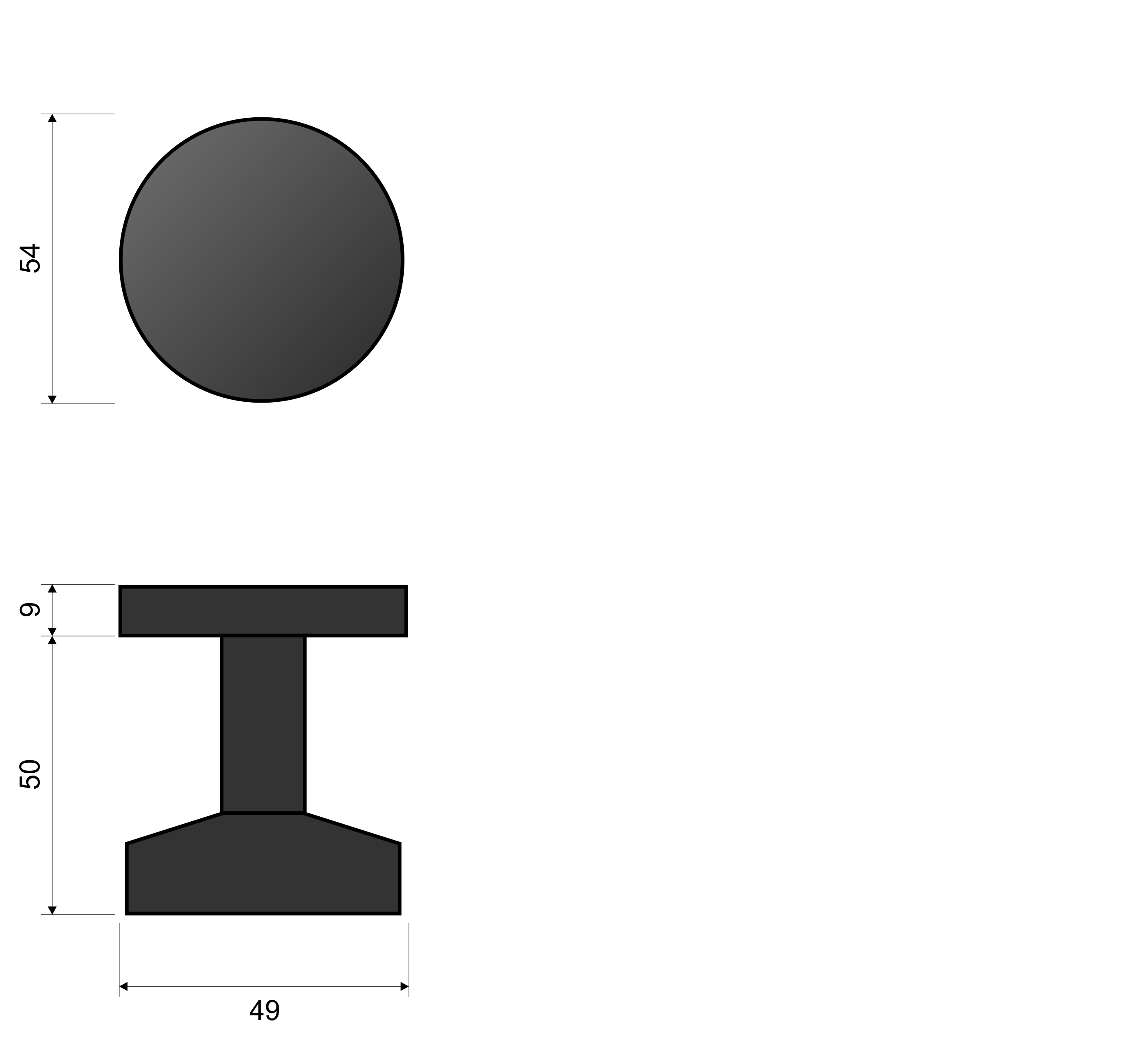 Gałka stała GOX 500 INOX na szyldzie okragłym.