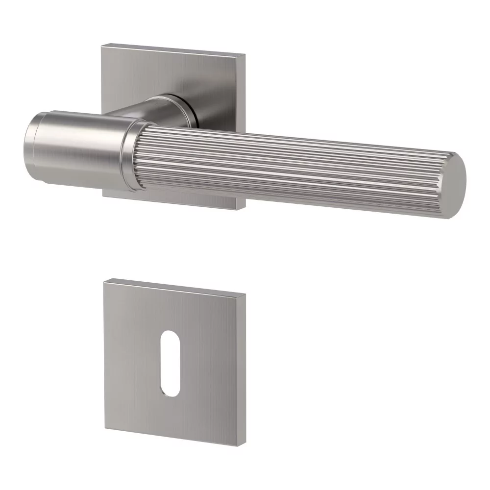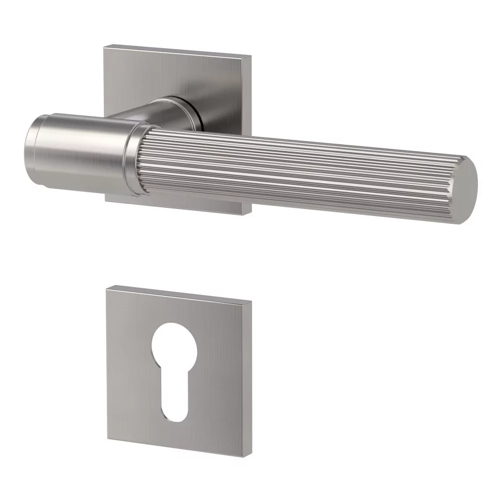 Klamka ARIS FAST2FIX Q to połączenie klasycznej formy i nowoczesnego wykończenia. Jej geometryczny kształt inspirowany połączeniami rur symbolizuje trwałość i solidność, a subtelna, filigranowa struktura powierzchni zachęca do dotyku, dodając całości wyjątkowego charakteru. Kontrast prostoty formy z dopracowanym detalem sprawia, że klamka doskonale wpisuje się zarówno w zabytkowe wnętrza pełne detali, jak i w nowoczesne, minimalistyczne aranżacje.