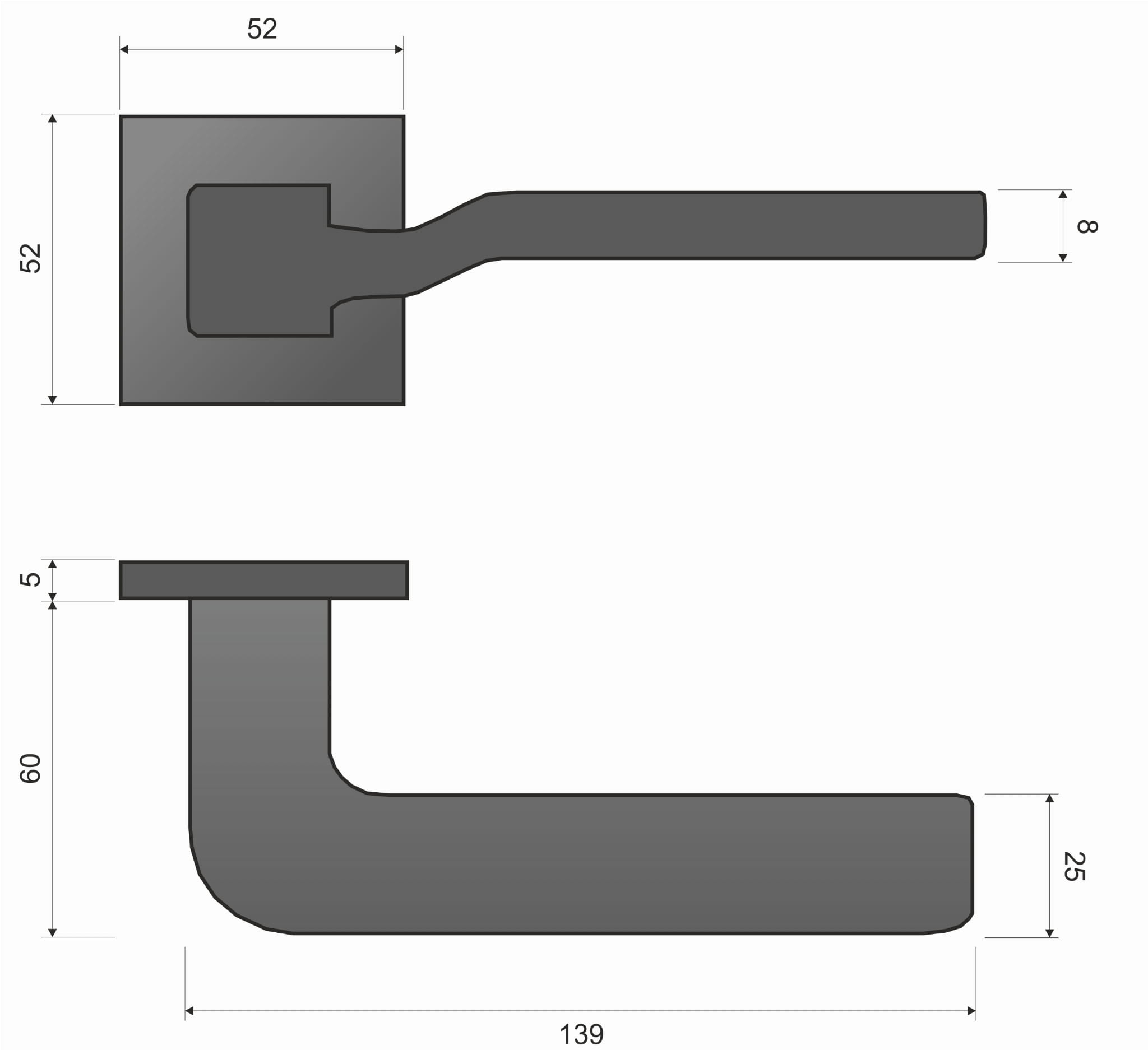 Klamka dzielona na szyldzie kwadratowym , z wspomaganiem dwustronnym.