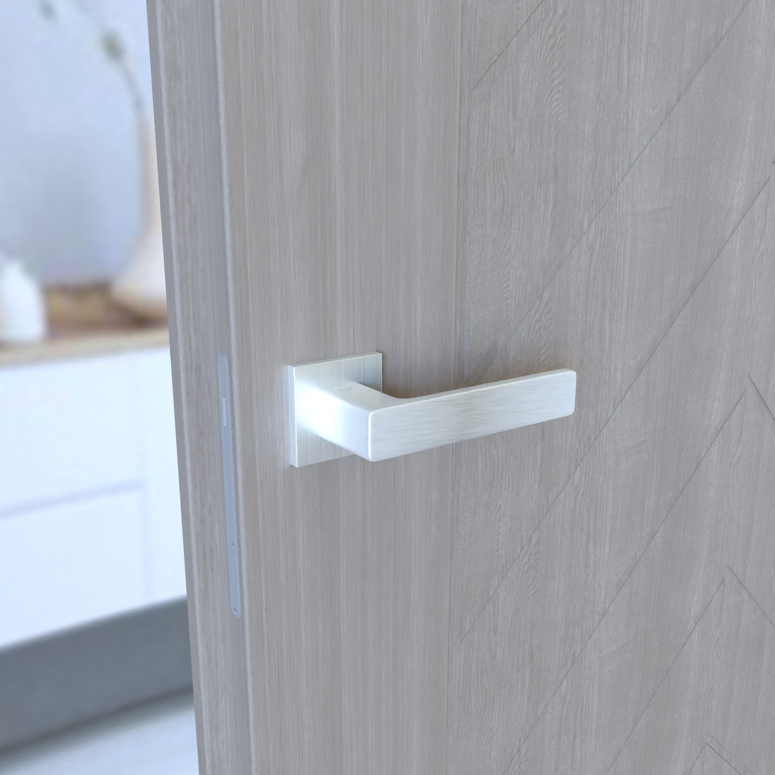 W komplecie znajdują się dwie klamki i zestaw montażowy.