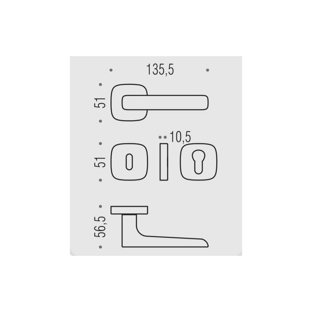 W komplecie znajdują się dwie klamki i zestaw montażowy.