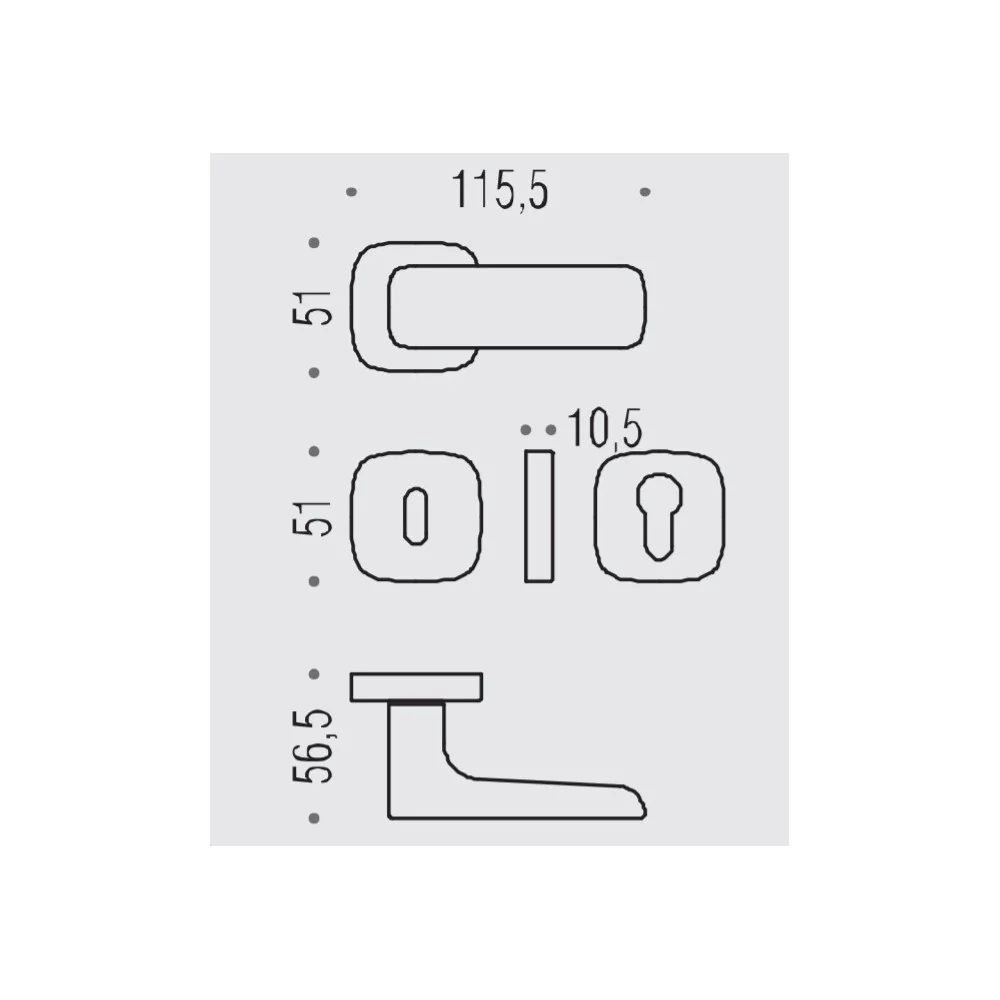 W komplecie znajdują się dwie klamki i zestaw montażowy.