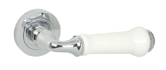 Klamka Ludwik R w kolorze chrom , rączka w kolorze białym.