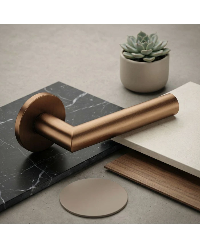 Zastanawiasz się, jak dodać swoim wnętrzom przytulności bez rezygnowania z nowoczesnego designu? Klamka Elle Slim w odcieniu matowego brązu to propozycja, która zachwyca proporcjonalną formą i wyjątkową funkcjonalnością. Połączenie finezyjnej, płynnej linii rękojeści z ultra-cienkim szyldem typu Slim (zaledwie 6 mm) tworzy nową jakość w dekoracji skrzydeł drzwiowych, nadając im prestiżowy wygląd.