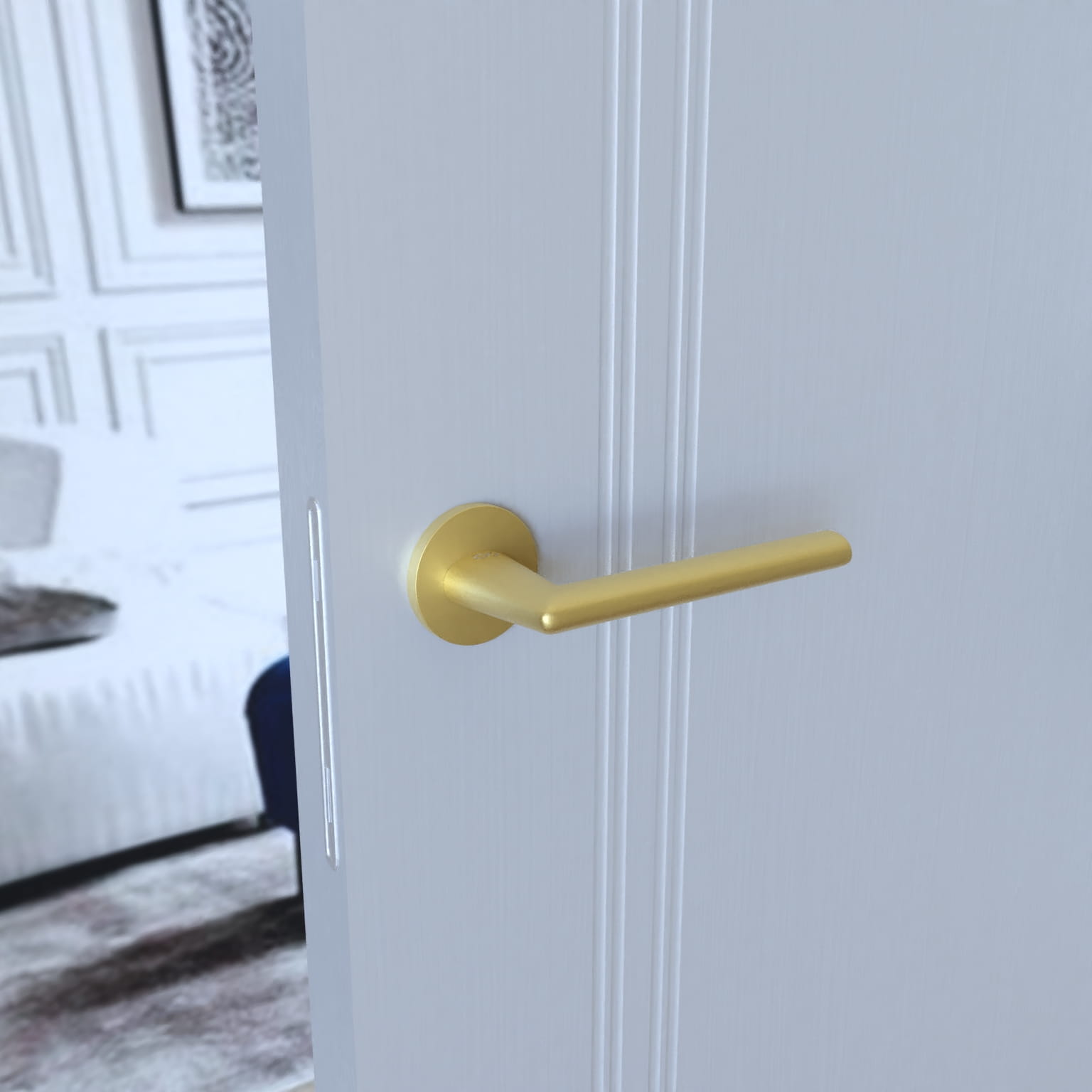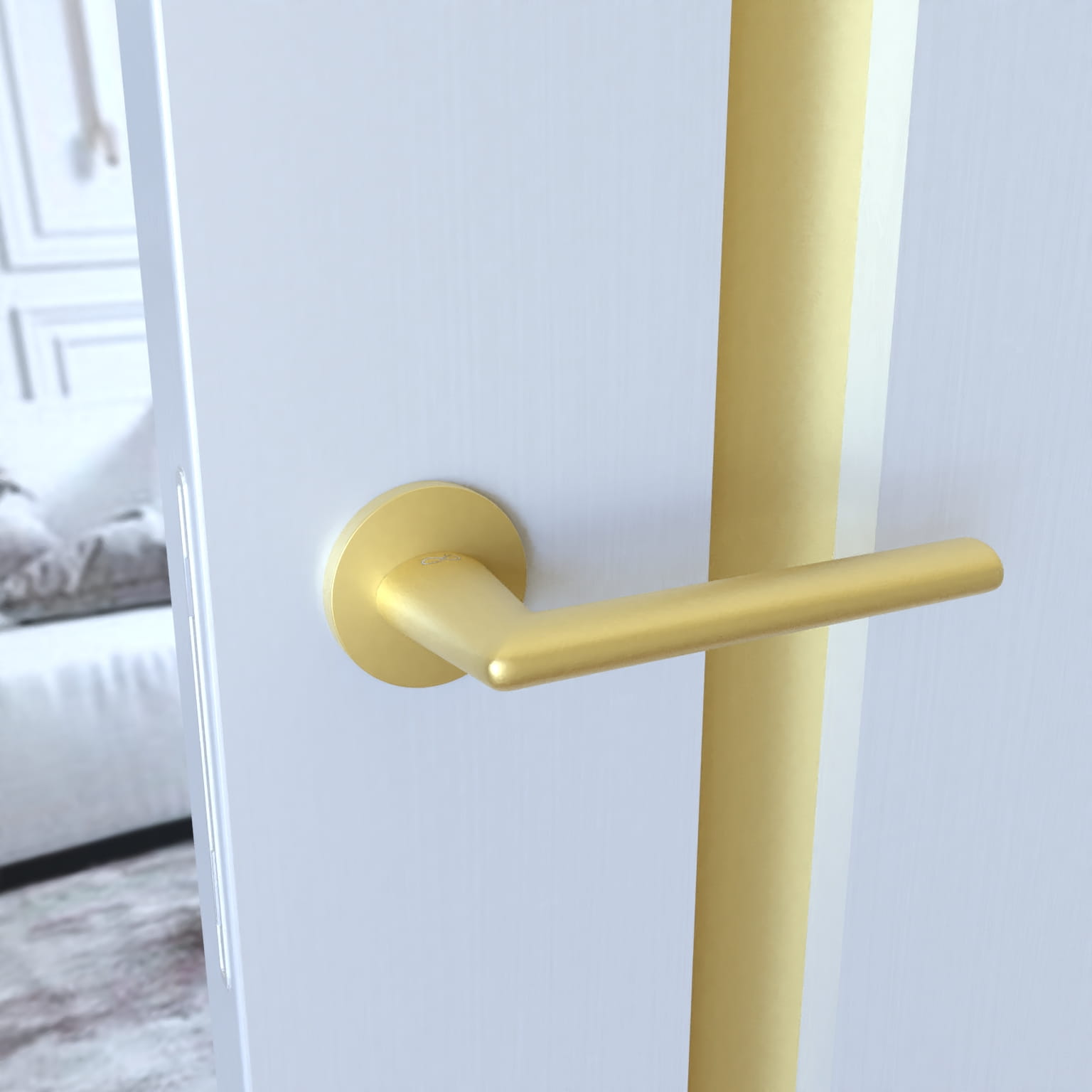 Klamka EVA KEVA O MG00 złoty mat – elegancja w nowoczesnym wydaniu, szyld okrągły 5 mm