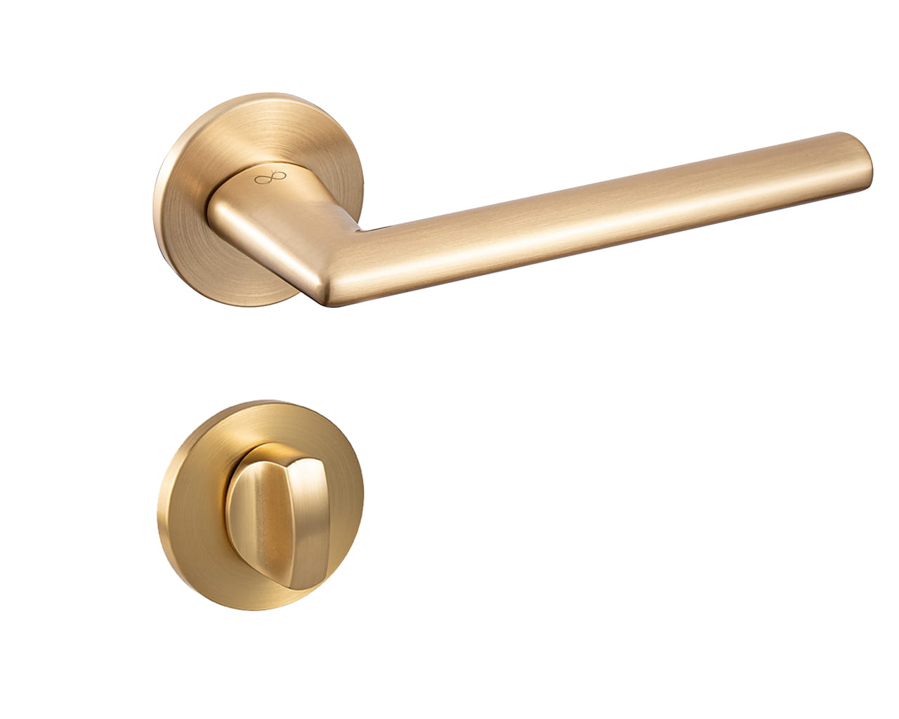 Model EVA KEVA O MG00 to klamka o wyjątkowo smukłej konstrukcji, umieszczona na okrągłym szyldzie o grubości zaledwie 5 mm. Doskonale sprawdza się w nowoczesnych wnętrzach, w których liczy się subtelna estetyka i wysoka funkcjonalność. Jej złote, matowe wykończenie wnosi do przestrzeni odrobinę luksusu i klasy.