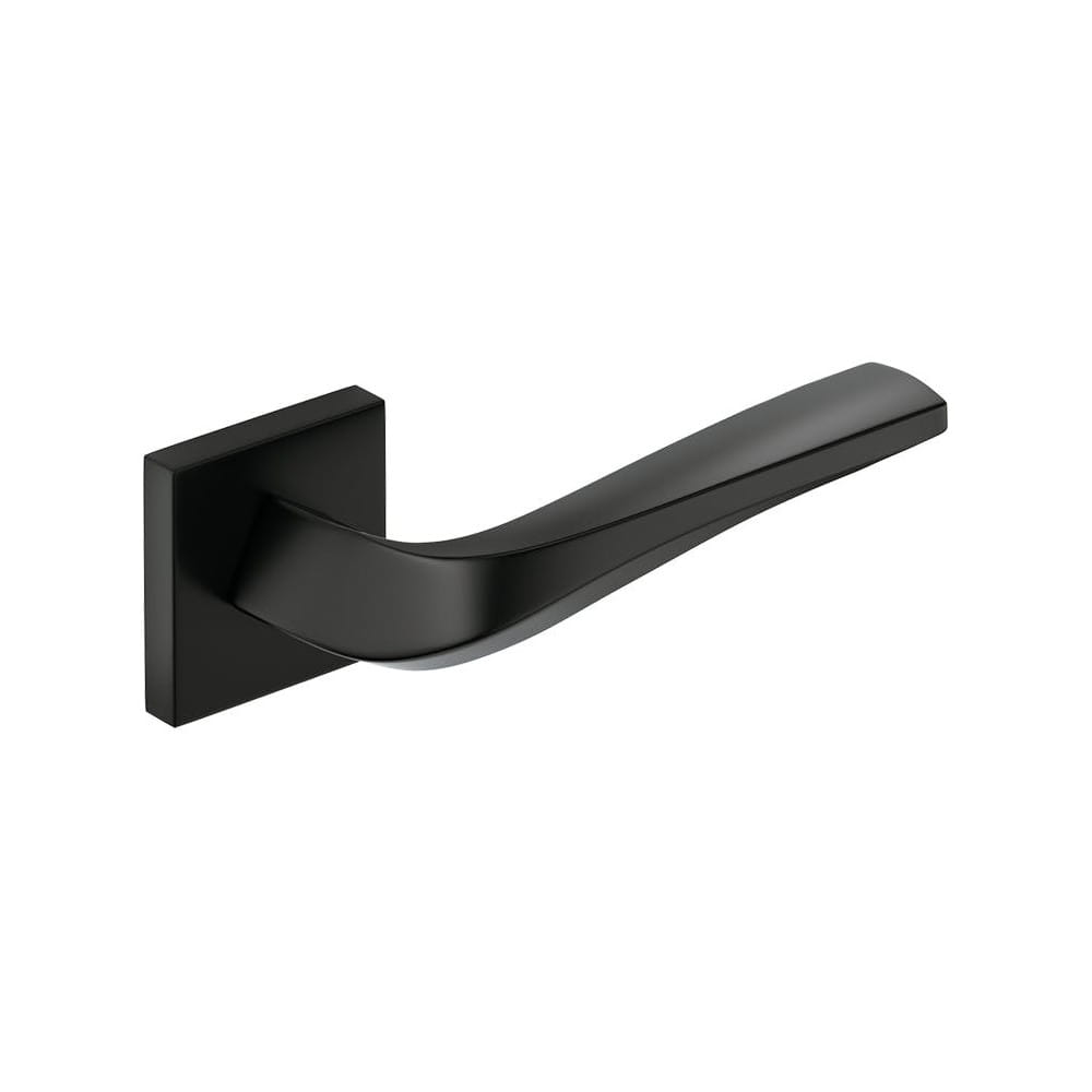 Klamka Flow czarna na szyldzie kwadratowym.