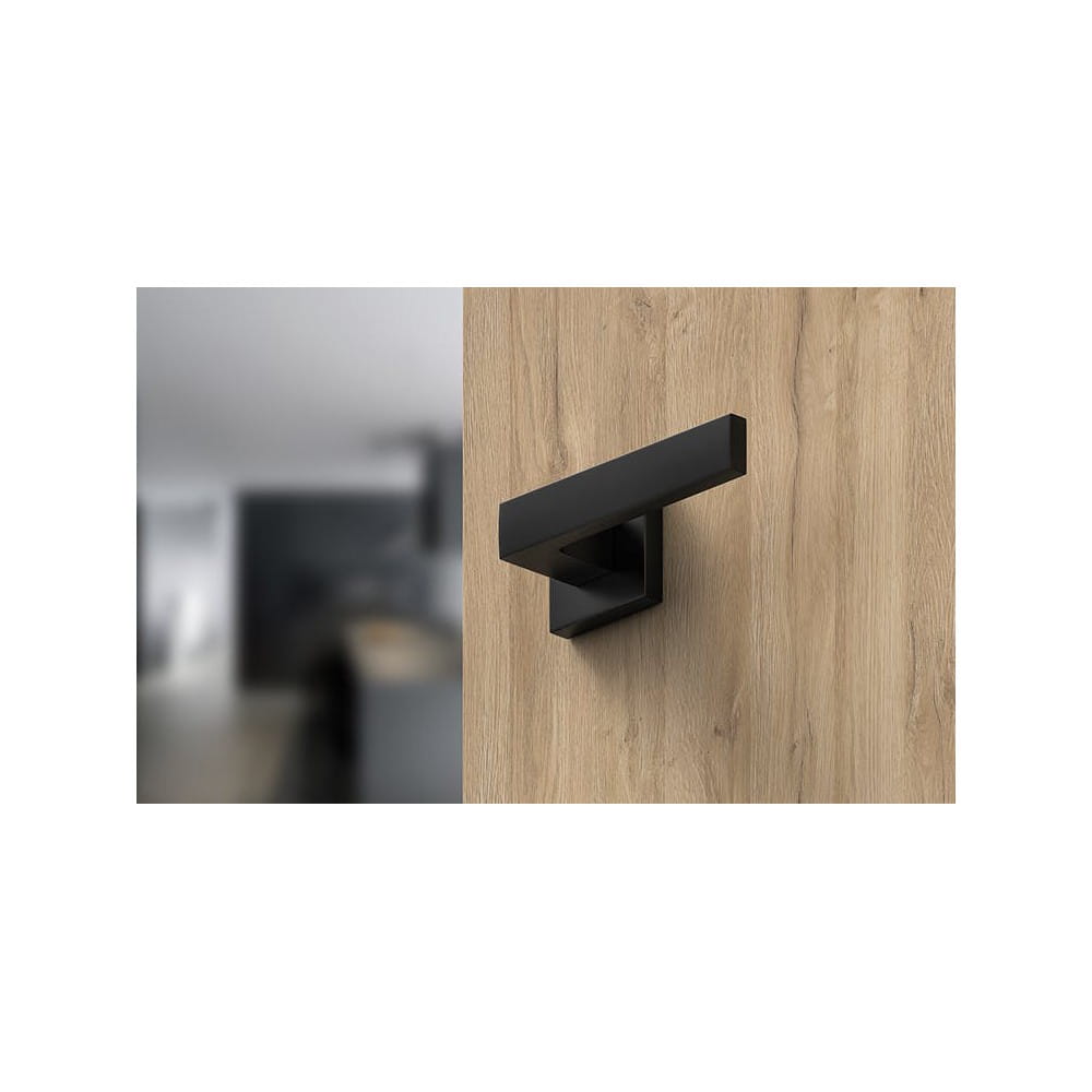 W zestawie znajdują się dwie klamki i zestaw montażowy(trzpień 8x8 mm, śruby przelotowe i wkręty do drewna).