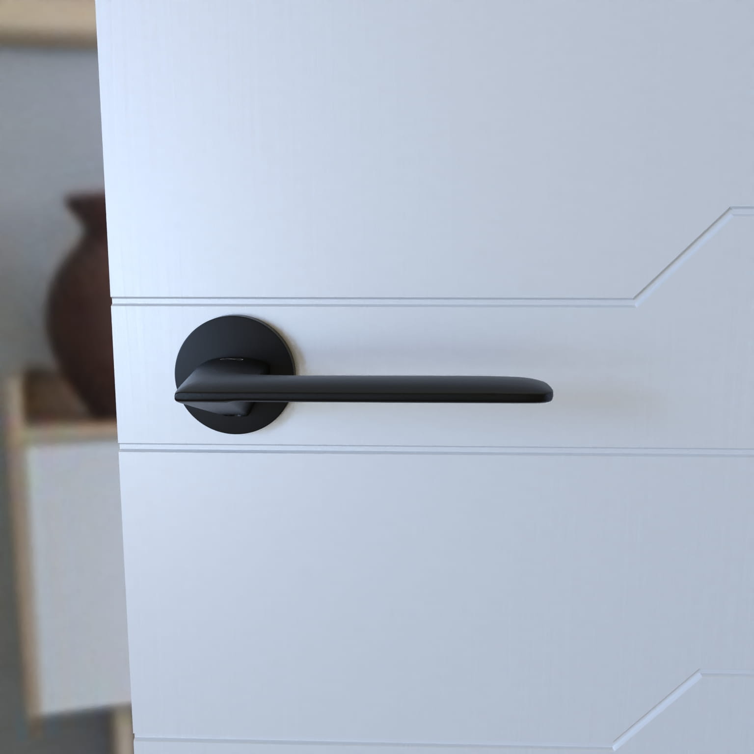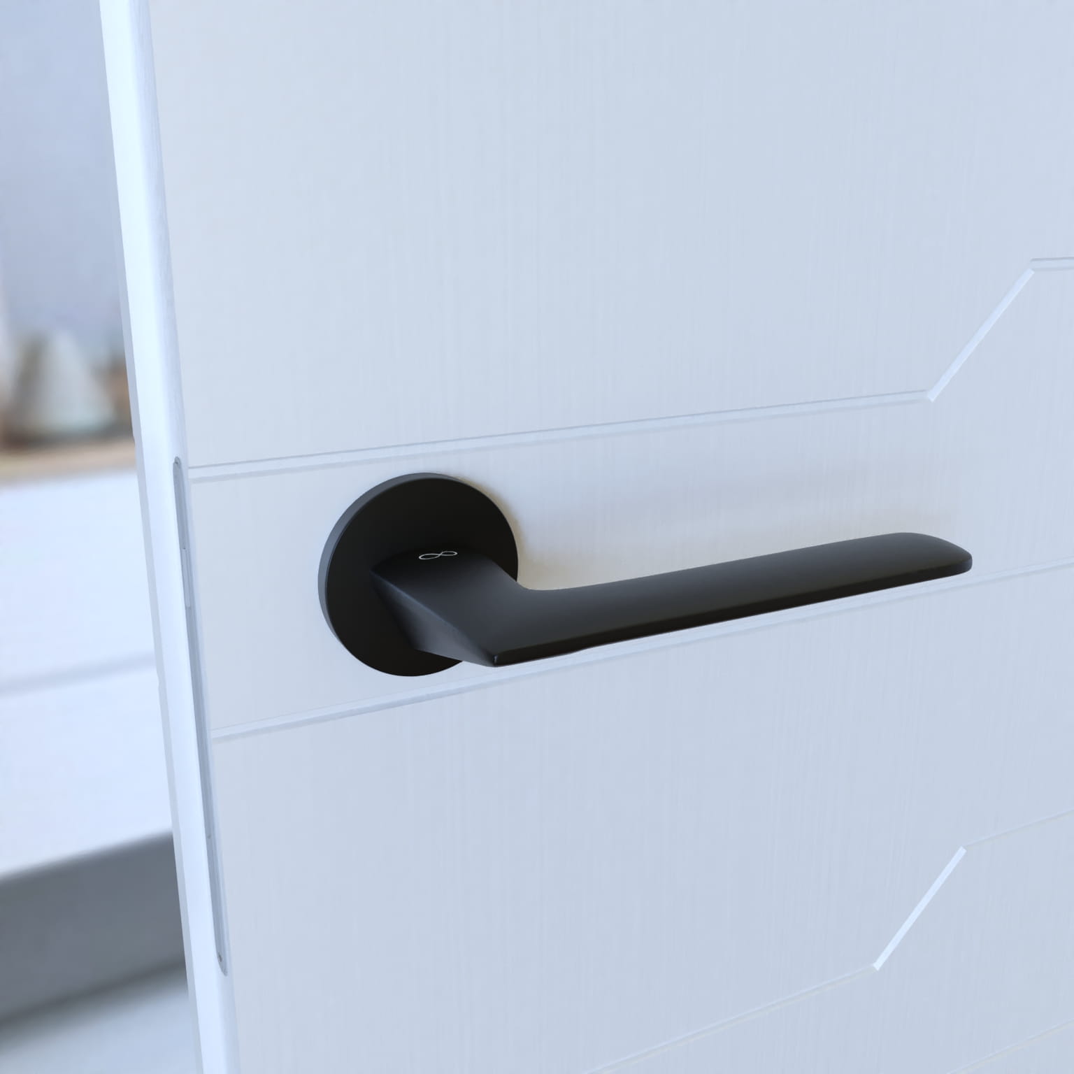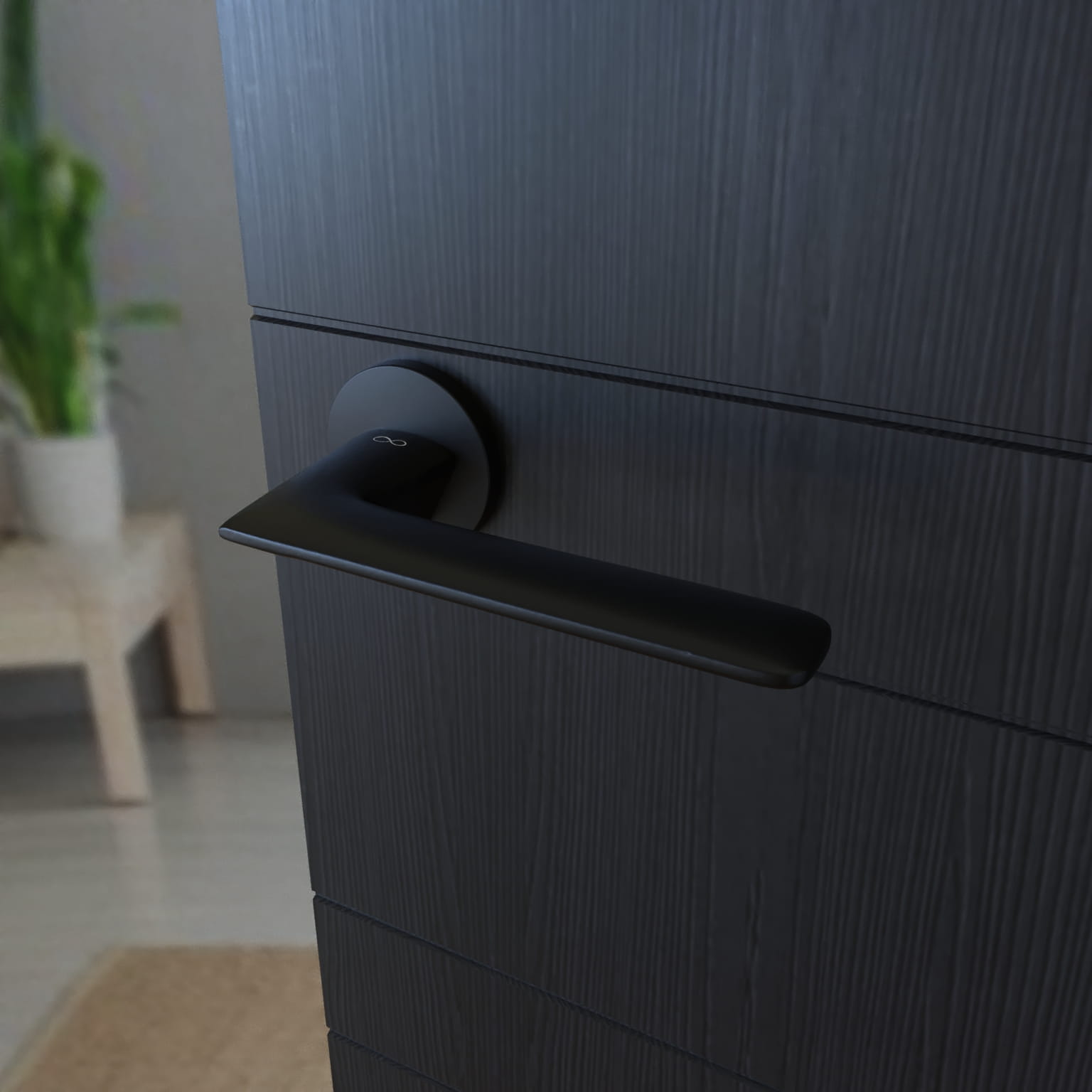 Model GIULIETTA KGUL S O B00 z prestiżowej linii SUPER PREMIUM to wyjątkowa klamka na eleganckiej, okrągłej rozecie, która doskonale komponuje się z nowoczesnym wnętrzem. Minimalistyczna forma w głębokiej czerni nadaje drzwiom charakteru i stylu, zachowując przy tym wysoką funkcjonalność.