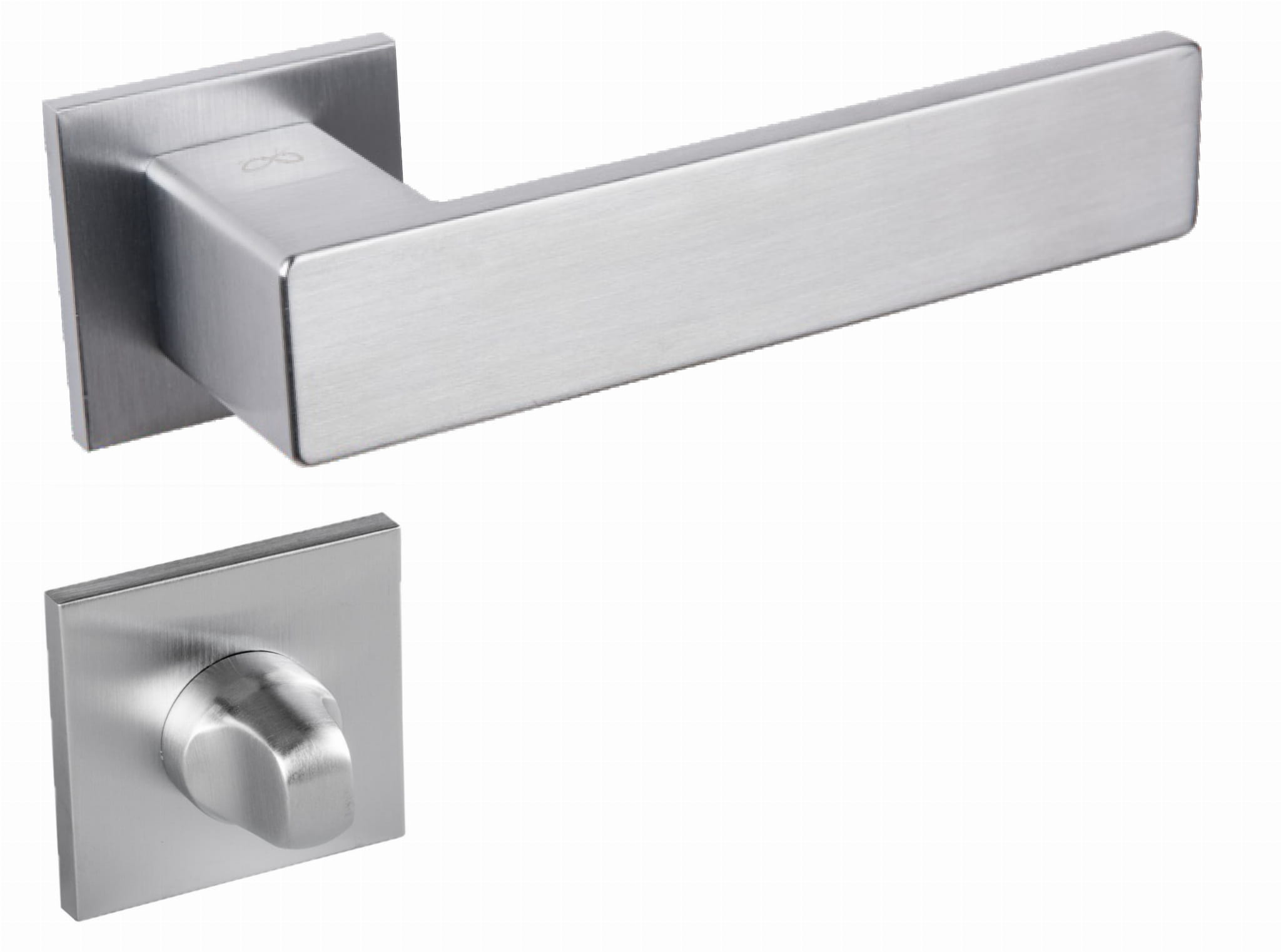 Klamka dzielona na szyldzie kwadratowym, z wspomaganiem dwustronnym.