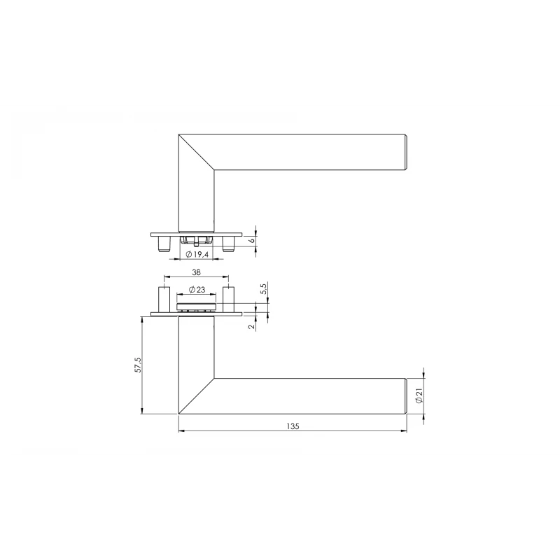 Model ten osadzony jest na wyjątkowo cienkiej rozecie o grubości zaledwie 2 mm, co czyni go idealnym wyborem dla osób ceniących dyskretne, ale efektowne detale. Klamka została wyposażona w sprężynę jednostronną, umieszczoną w jednej z rękojeści, co zapewnia komfortowe użytkowanie przy zachowaniu smukłej formy.