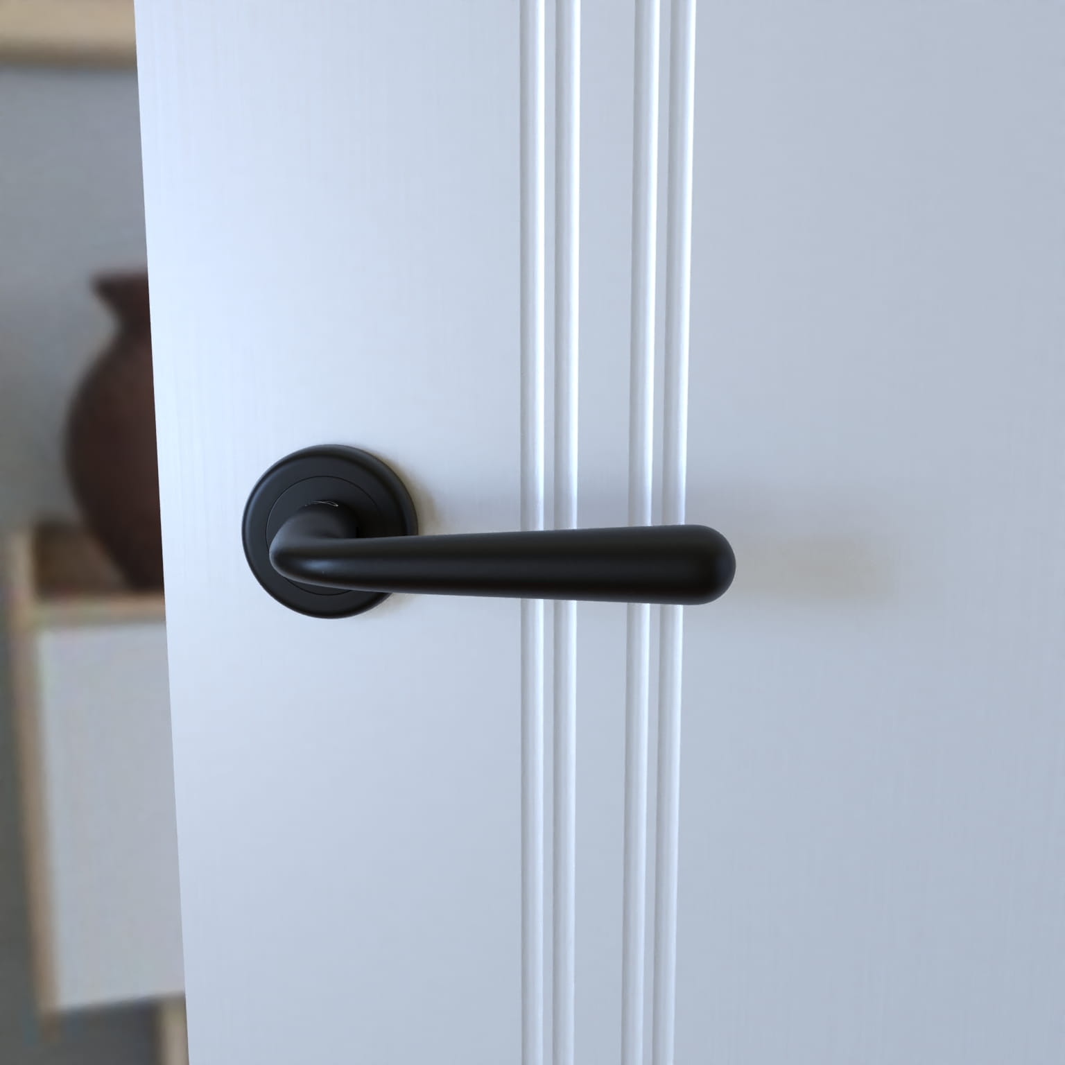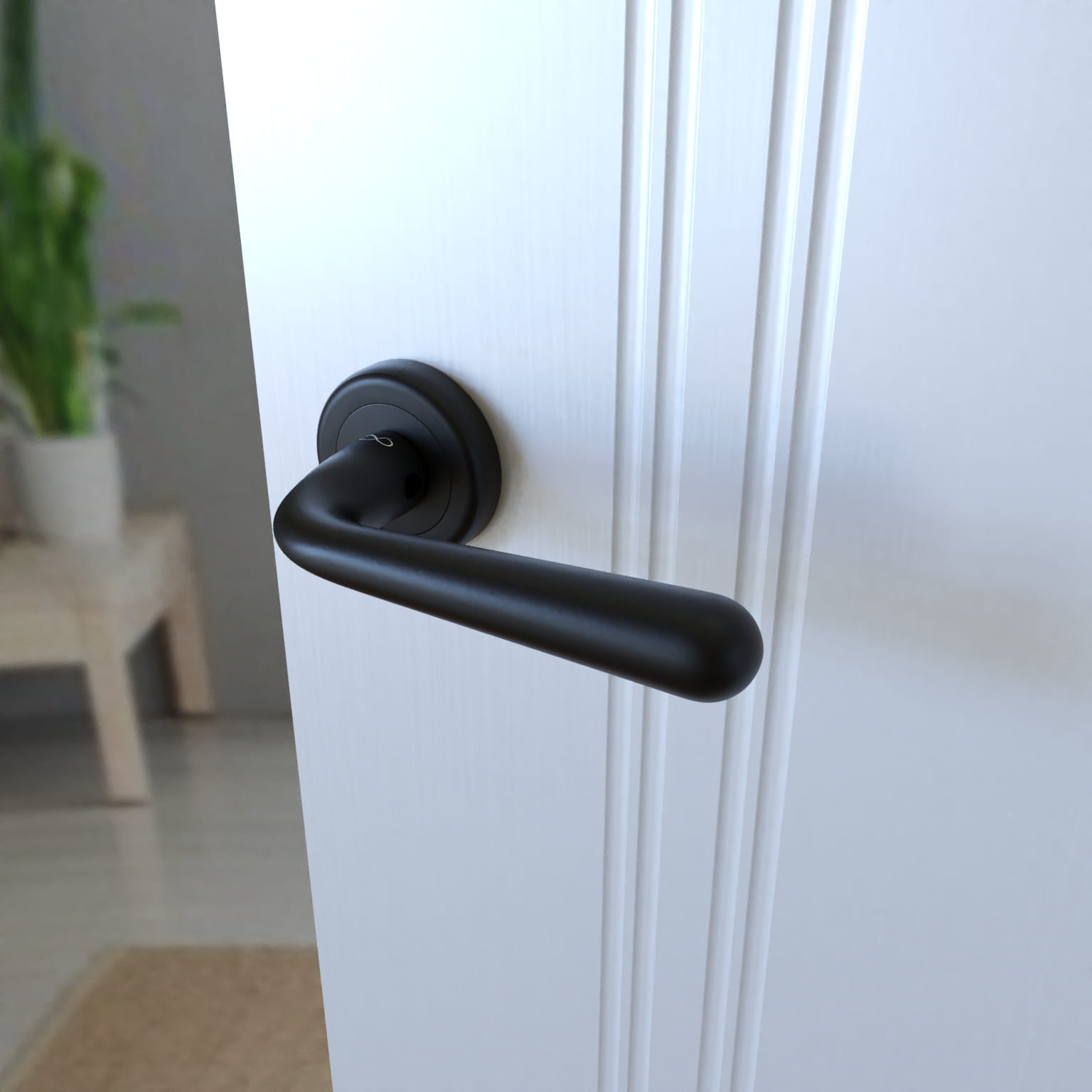 Klamka LEA KLE B00 na okrągłym szyldzie to eleganckie i funkcjonalne rozwiązanie dla drzwi wewnętrznych, które doskonale komponuje się z nowoczesnymi wnętrzami.