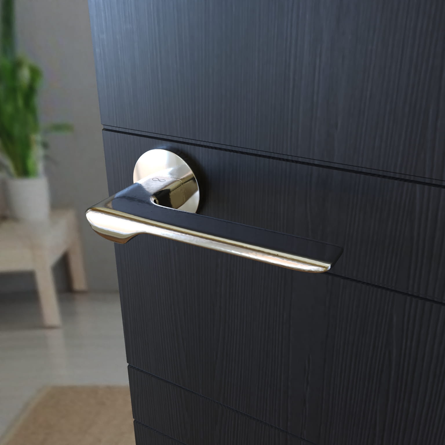 W komplecie znajdują się dwie klamki i zestaw montażowy.