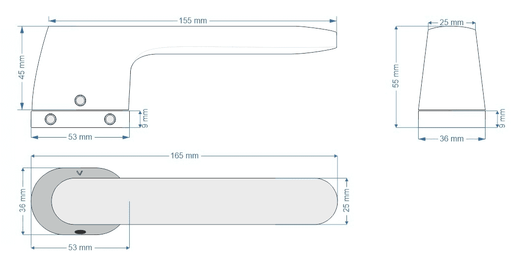 W zestawie znajdują się dwie klamki i zestaw montażowy(trzpień 8x8 mm, śruby przelotowe i wkręty do drewna).
