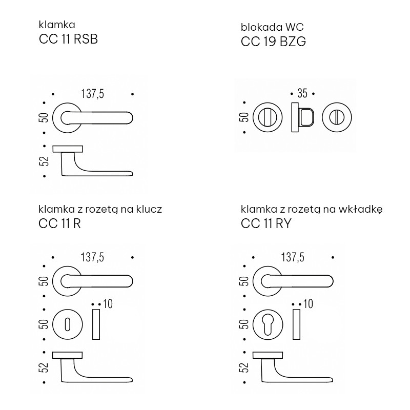 W przypadku montażu klamki w drzwiach z zamkiem magnetycznym – trzpień w rozecie WC ma standardowy rozmiar 6 mm, według włoskiej normy. Polska norma to rozmiar 4 mm. W trakcie zakupu należy wybrać odpowiedni rozmiar trzpienia WC, zgodnie z wymaganiami instalacji.