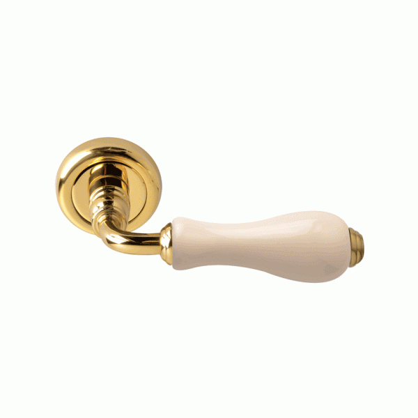 Klamka Ottocento porcelana kremowa gładka kolor mosiądz polerowany