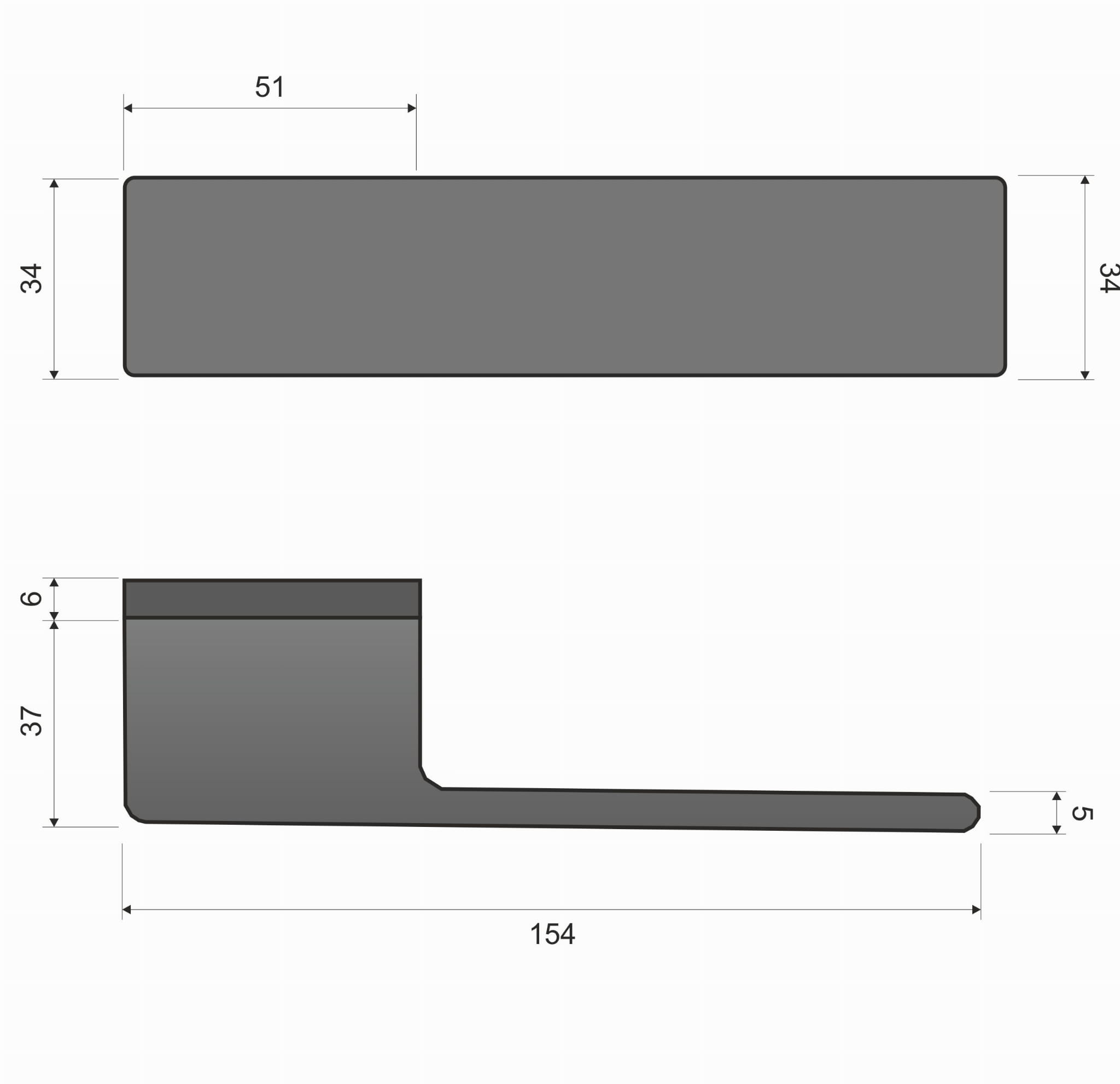 Klamka została osadzona na rozetce prostokątnej RT o grubości 7 mm, która idealnie wpisuje się w nowoczesne trendy wnętrzarskie. Smukła forma i subtelny połysk wykończenia podkreślają estetykę drzwi, tworząc spójną i elegancką całość.