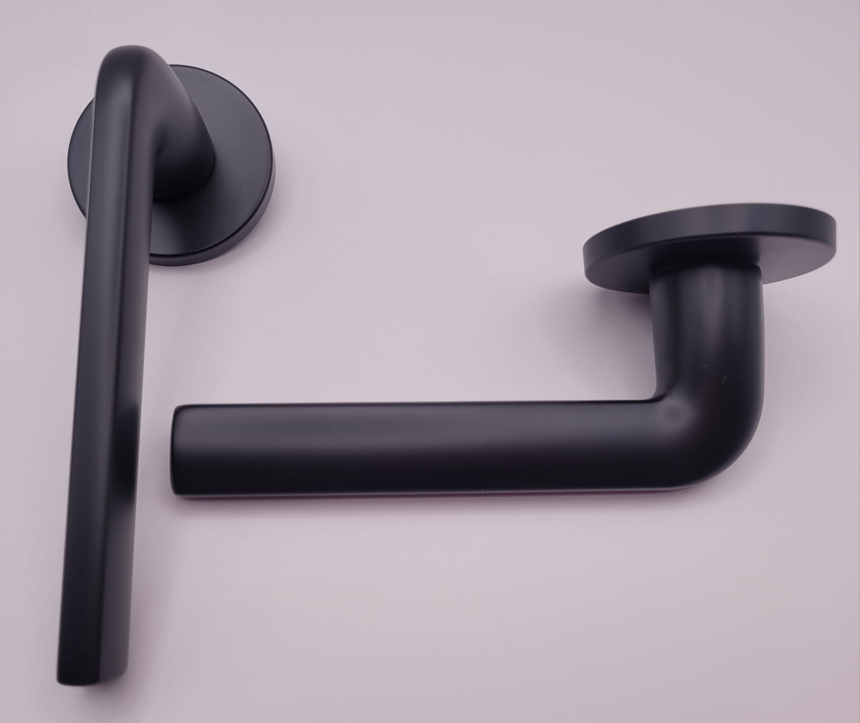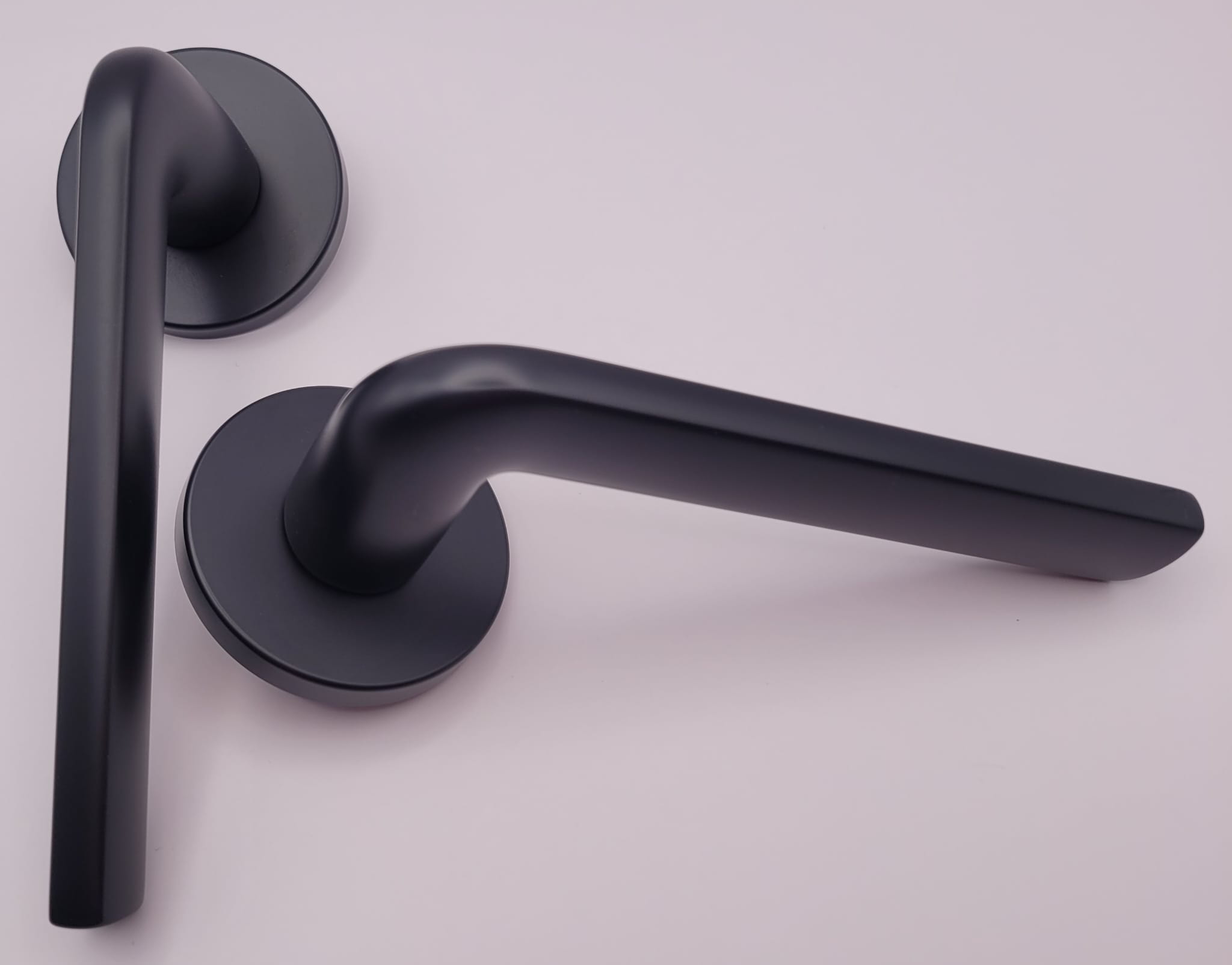 Klamka Scandi Slim czarna na szyldzie okrągłym — minimalistyczny akcent do eleganckich wnętrz
