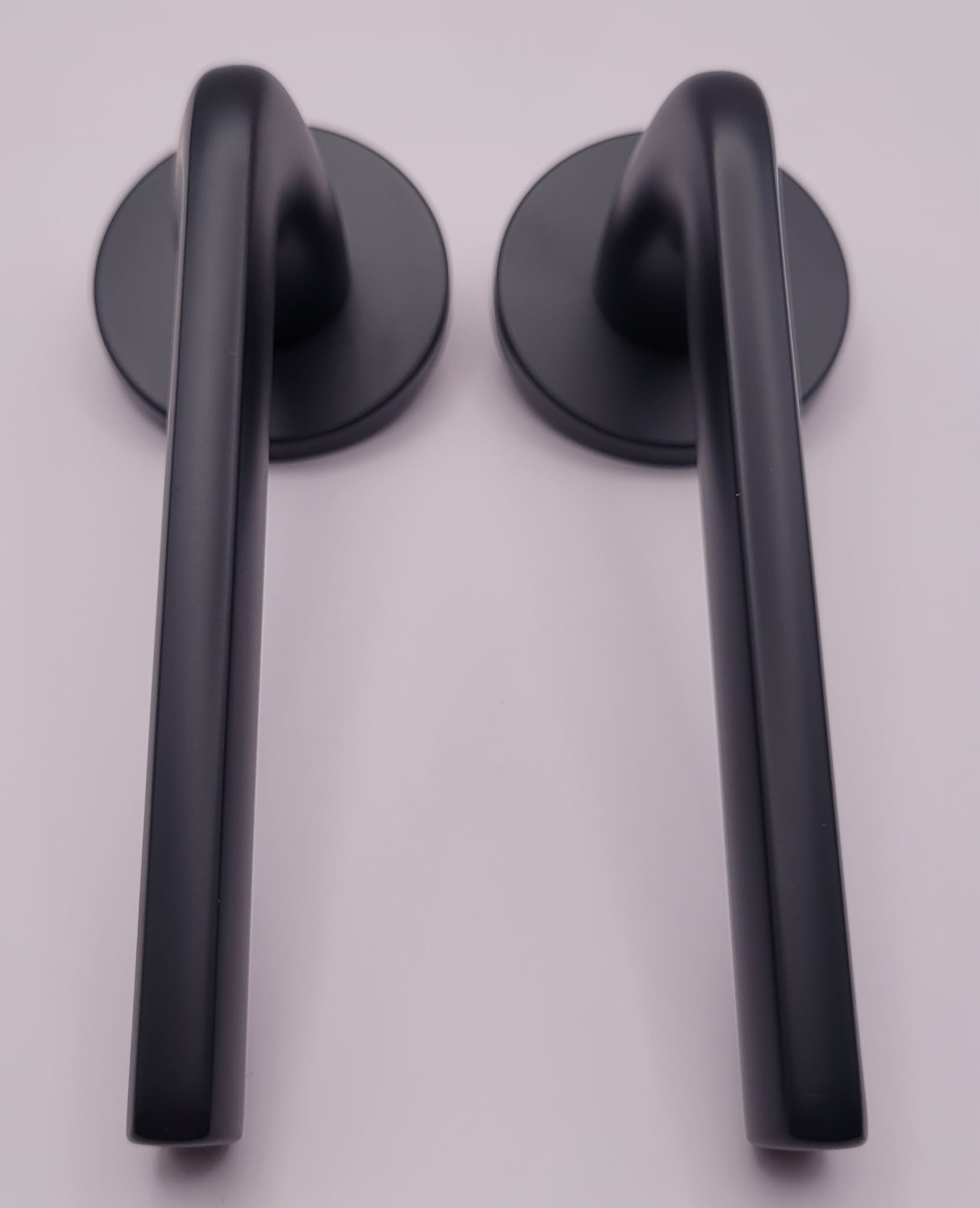 Klamka Scandi Slim szyld płaski okrągły, czarna Corona