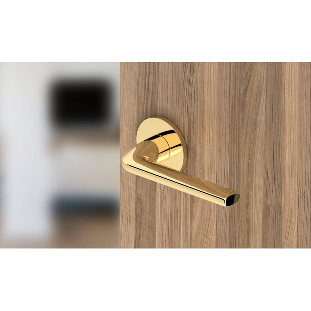 Klamka Scandi Slim złoty połysk PVD na szyldzie okrągłym — klasyczna elegancja z nowoczesnym wykończeniem