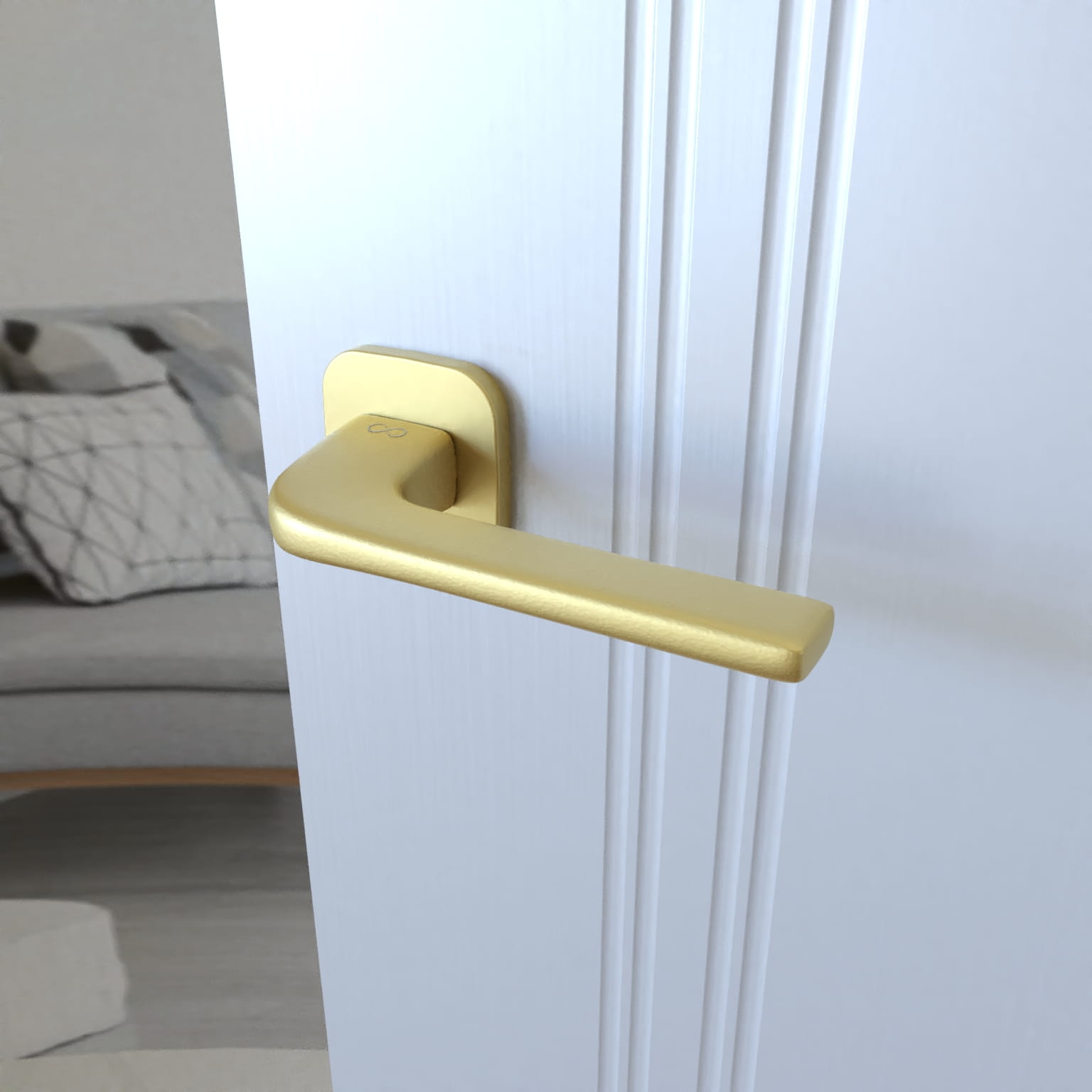 Złoto w matowym wykończeniu to wybór dla tych, którzy cenią elegancję bez przesady – ciepłe, satynowe tony nadają drzwiom wyjątkowego wyrazu, a jednocześnie harmonijnie współgrają z innymi elementami wnętrza.