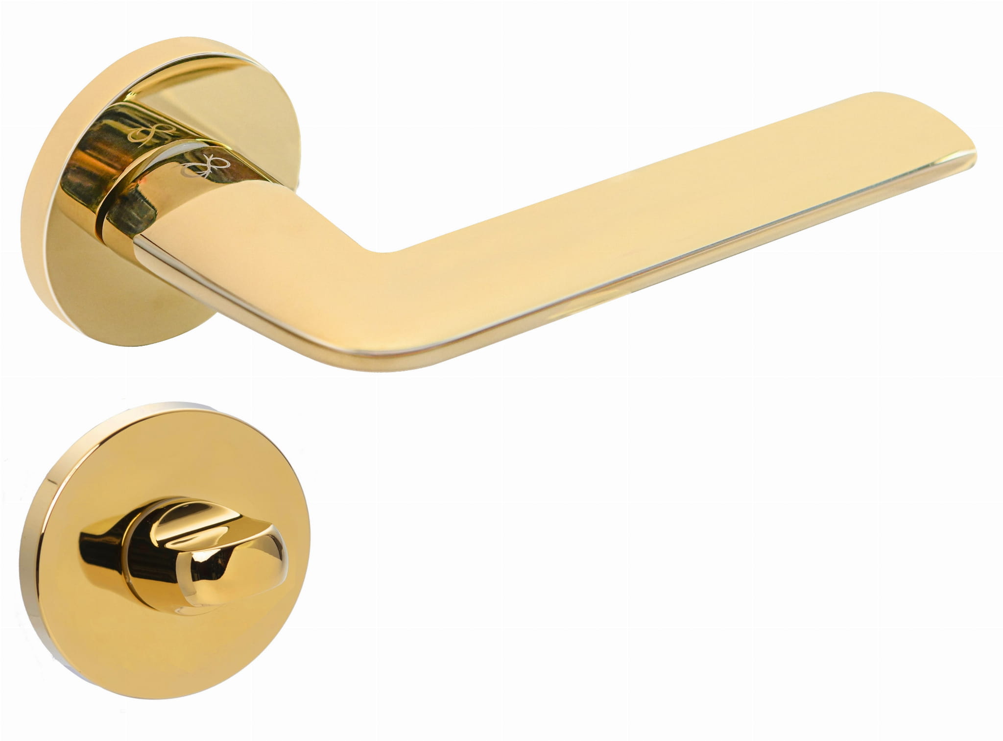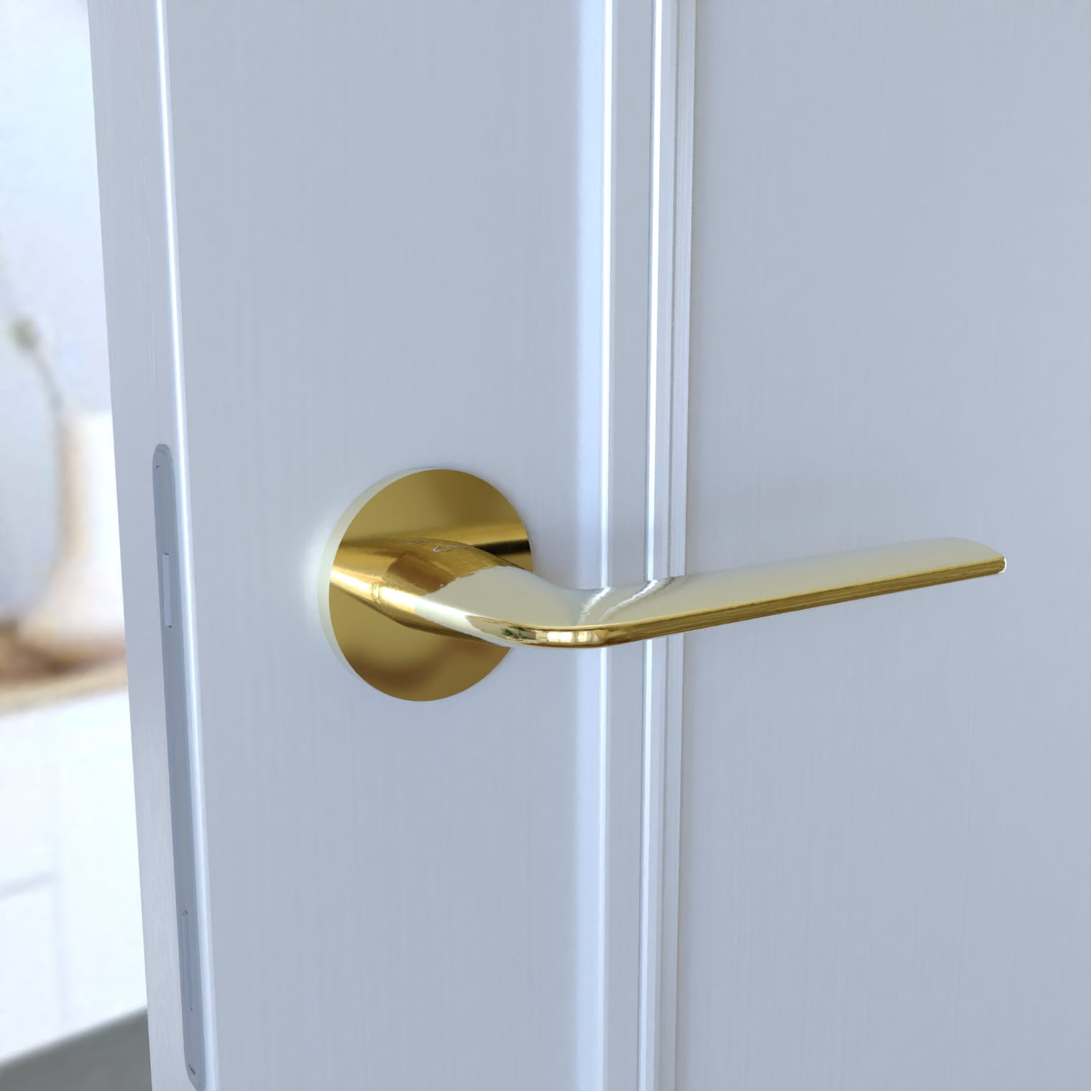 Klamka Stinger KSR O G00 – złoty połysk i elegancja na okrągłej rozecie z serii Infinity Line.