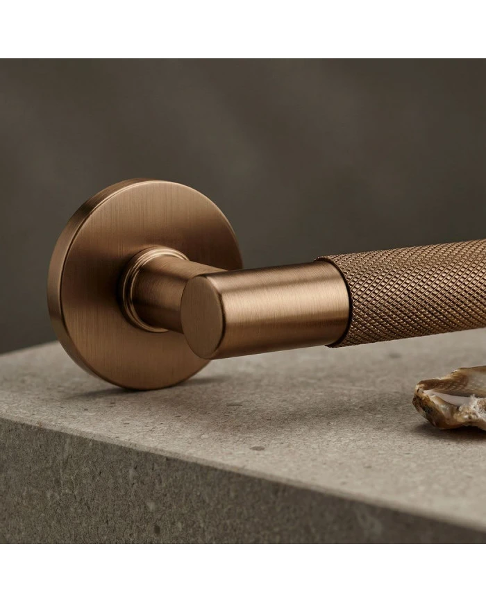 Klamka Time brąz mat – design radełkowany & szyld slim 6 mm.