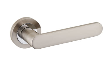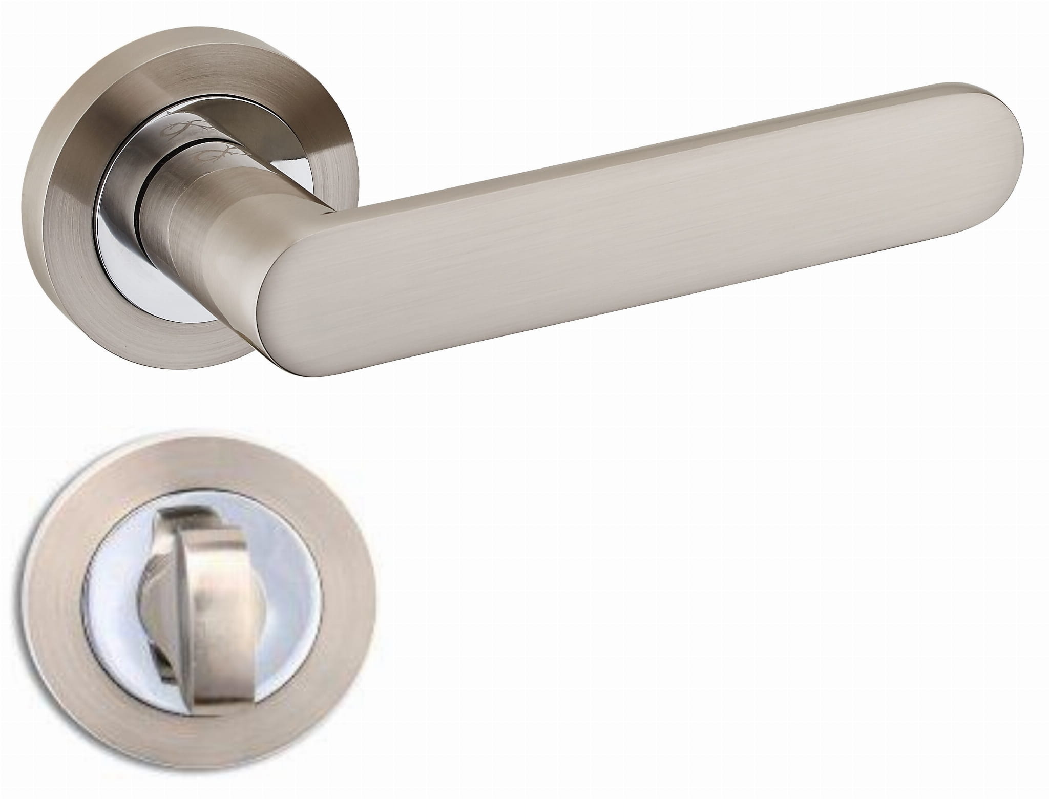 Ekskluzywna i funkcjonalna klamka Wenus KWU O 100 w kolorze satyna/chrom na szyldzie okrągłym.