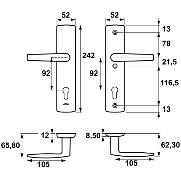 - W przypadku potrzeby zastosowania dłuższych śrub montażowych, należy dokonać wyboru na podstawie załączonego wycinka z katalogu firmy AXA (dostępnego w plikach do pobrania).