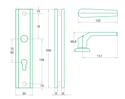 Klamka na prostokątnym szyldzie z wspomaganiem Premium , szybsza w montażu i łatwiejsza w użyciu.