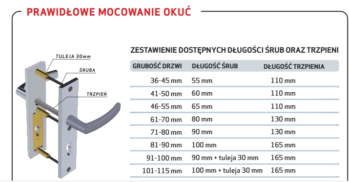 W zestawie znajdują się śruby montażowe długości 90 mm , trzpień długości 130 mm , jeżeli potrzebujesz dłuższe ,wybierz je w zakładce produkty powiązane , wg załączonego wycinka z katalogu AXA .