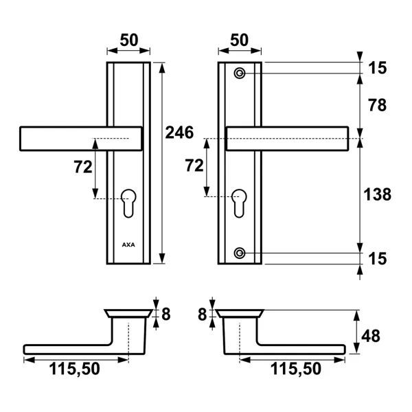 Klamka + klamka Haga ++ AXA F8 czarna