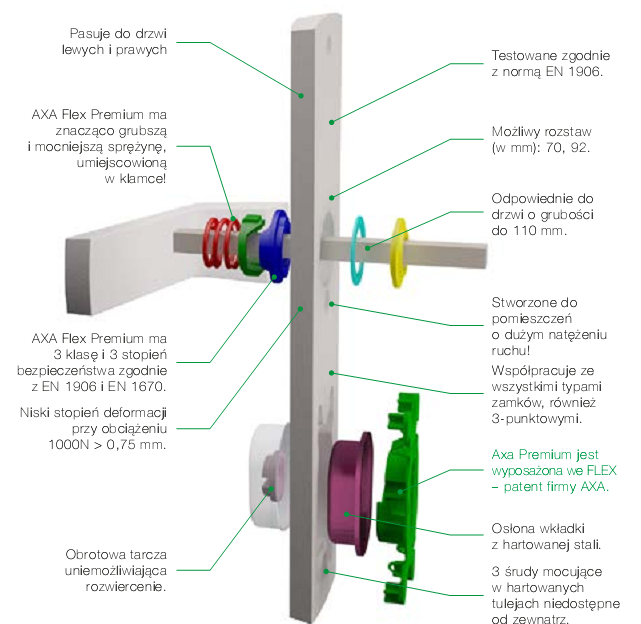 Poznaj klamkę Jupiter – połączenie solidnego wykonania, nowoczesnych rozwiązań i eleganckiego designu. Model ten został wyposażony w opatentowane przez firmę AXA samoregulujące zabezpieczenie wkładki FLEX, które skutecznie podnosi poziom bezpieczeństwa, jednocześnie ułatwiając montaż dzięki swojej elastyczności i dopasowaniu do różnych typów wkładek.