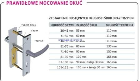 W zestawie znajdują się śruby montażowe długości 90 mm , trzpień długości 130 mm , jeżeli potrzebujesz dłuższe , wybierz je wg załączonego wycinka z katalogu AXA .