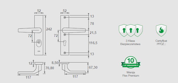 Klamka KIOTO z zabezpieczeniem wkładki FLEX.