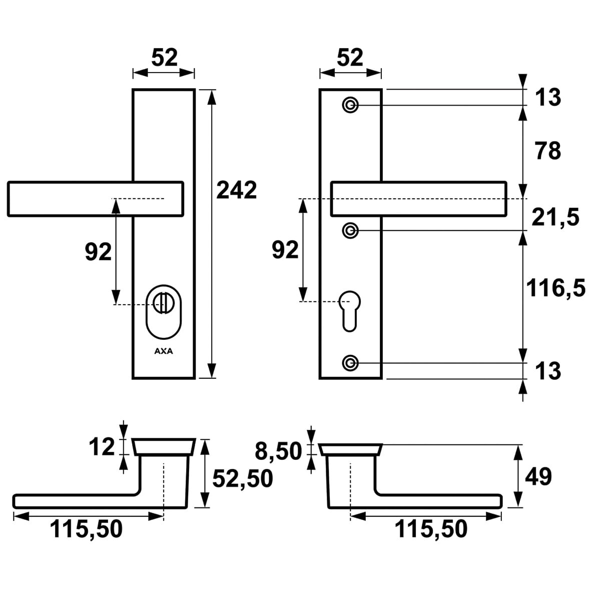 Klamka+klamka Royal FLEX ++ AXA F8 czarna