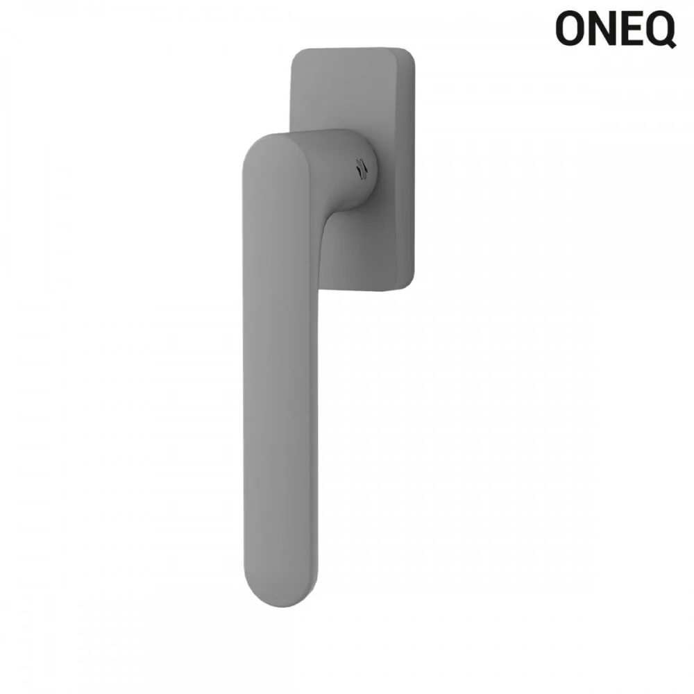 Włoska klamka okienna One na szyldzie prostokątnym.