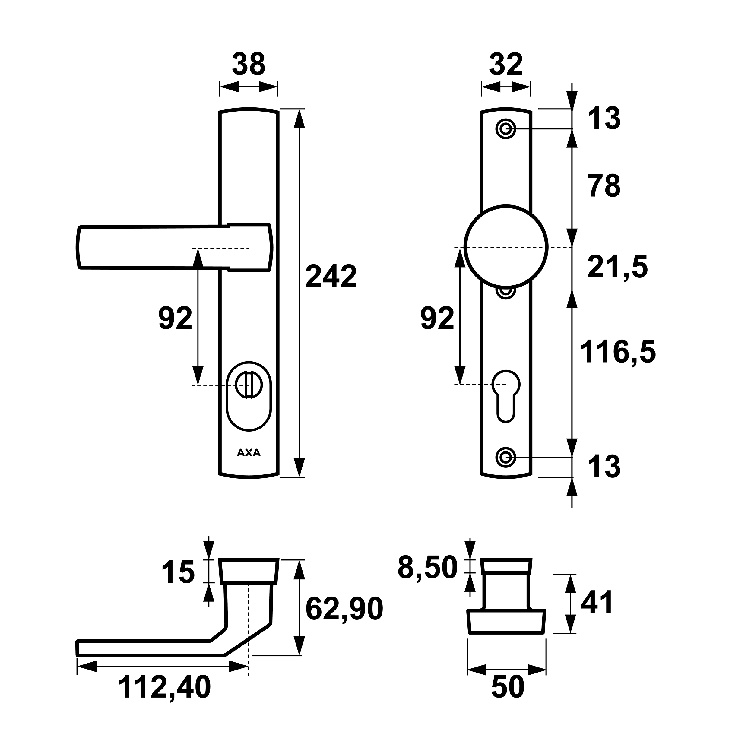 Klamko gałka ruchoma Solid FLEX Premium F8 czarna AXA