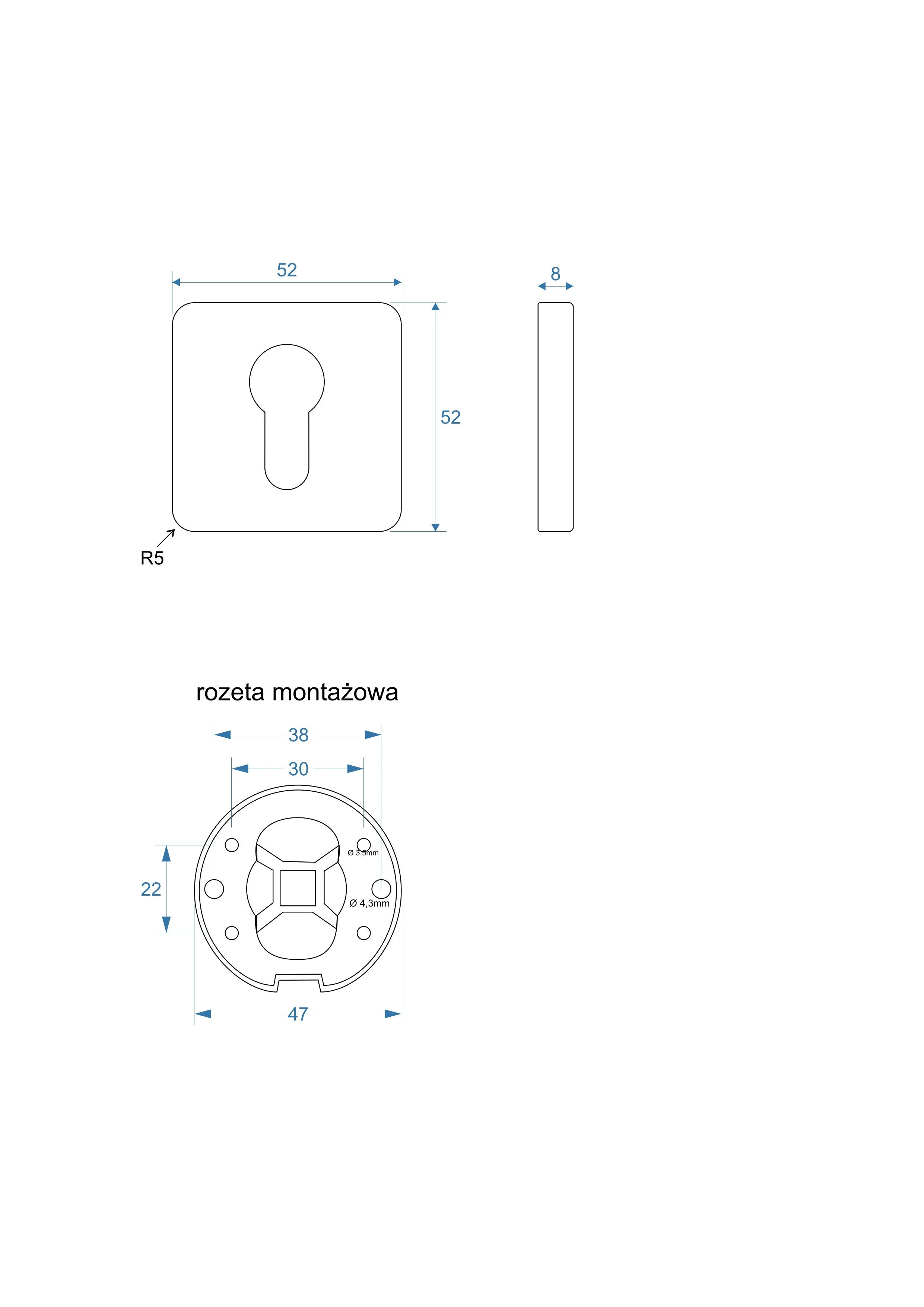 W komplecie dwie rozety i zestaw montażowy